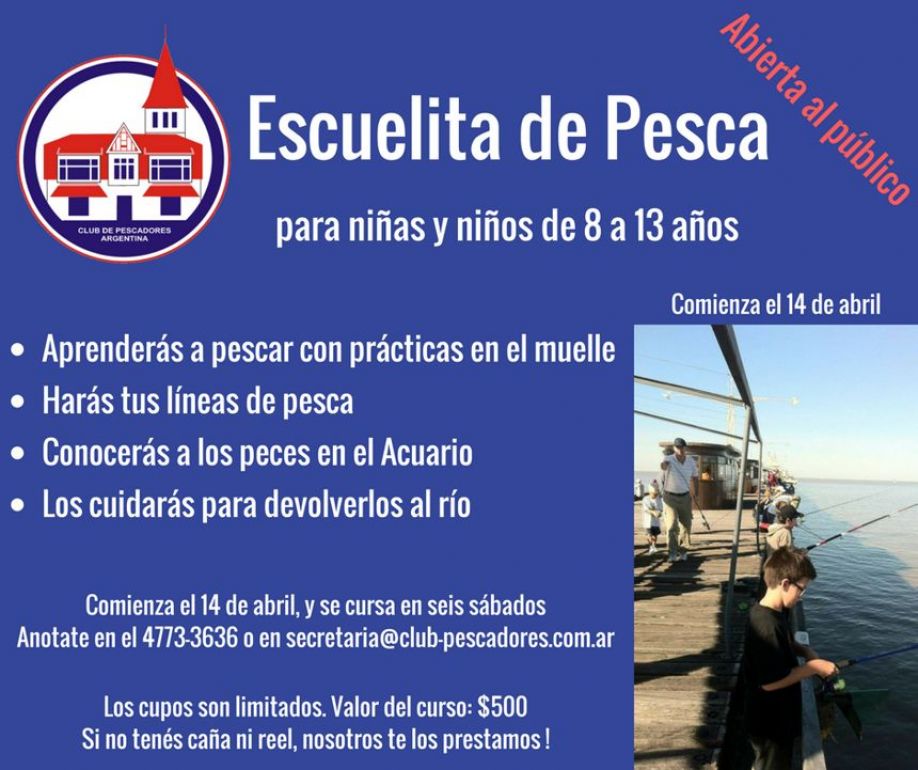 Los instructores trabajan ad-honorem y los chicos que no tengan equipos de pesca no se preocupen, que se los proporcionaremos sin costo alguno. El valor del curso es solo para cubrir los gastos del manual, líneas y gastos administrativos.