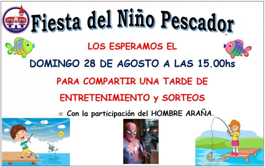 El próximo domingo 28 de Agosto desde las 15 horas se realizará en nuestra Sede Central la Fiesta del Niño Pescador, donde celebraremos el cierre del ciclo 2021/2022, con la presentación del show de El Hombre Araña.